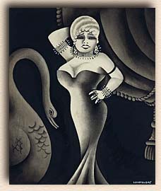 movie siren Mae West (1893-1980) by Miguel Covarrubias, 1928, for the New Yorker
