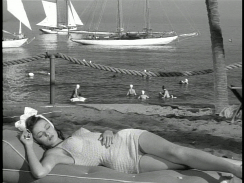 Gene Tierney sleeps in the sun in a scene from “Rings on Her Fingers,” filmed on Catalina Island.