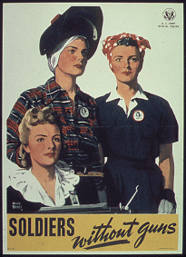 Women were invaluable in the war effort. Soldiers without Guns poster, Office of War Information, ca. 1944. (National Archives)