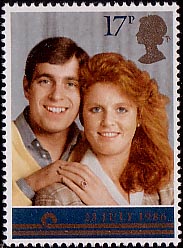 This commemorative stamp was issued in Great Britain in 1986 to commemorate the Royal Wedding of Prince Andrew to Miss Sarah Ferguson. They became the Duke and Duchess of York.