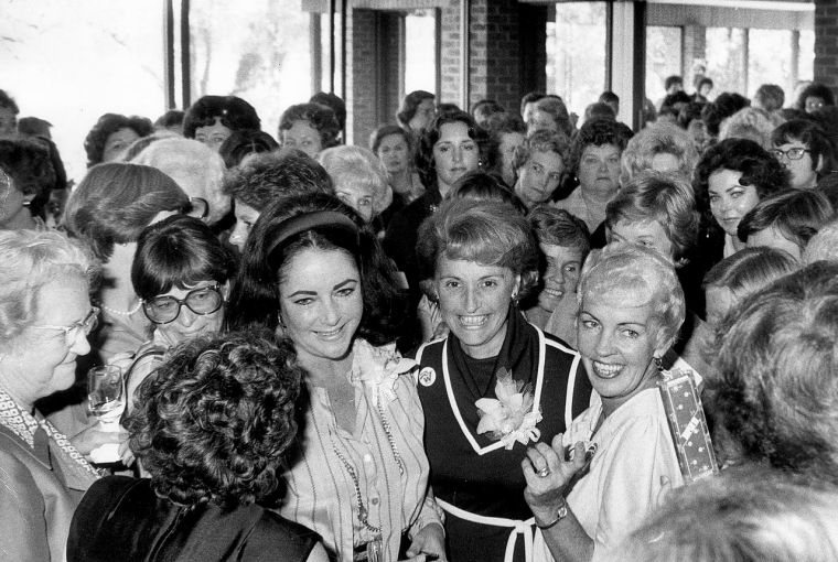 Large, enthusiastic crowds turned out to see Elizabeth, accessible to them, no longer protected by bodyguards, as in her movie stardom days. She shook so many hands that, one day, two blood vessels broke in her hand. That did not slow her down. She continued to shake hands, though her hand was swollen and protected by an elastic bandage. Elizabeth’s bursitis flared up in her shoulder from such rigorous handshaking. She received cortisone injections to help with the pain. Sometimes she campaigned in a wheelchair. But she kept going. She did it because