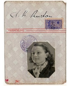 Nazis required all Dutch people over the age of 15 to carry an i.d. card. Here is Audrey’s at age 15. Her card doesn’t bear the dreaded letter, J, for Jew, which would mark her for deportation to the east for gassing at Auschwitz. 1944