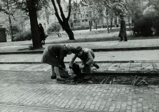 The Hunger Winter, 1944-45. Wood is taken from the tram rail in Holland to burn as fuel.